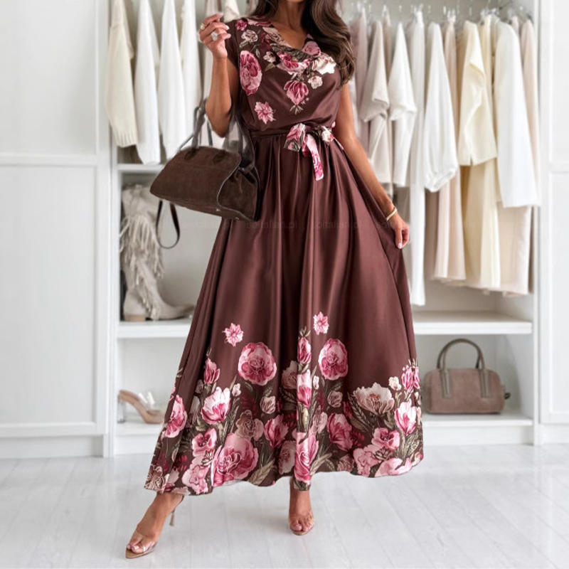 Leveransomfattning: 1Ă Elegant tryckt klĂ€nning med V-ringning för kvinnorÂ