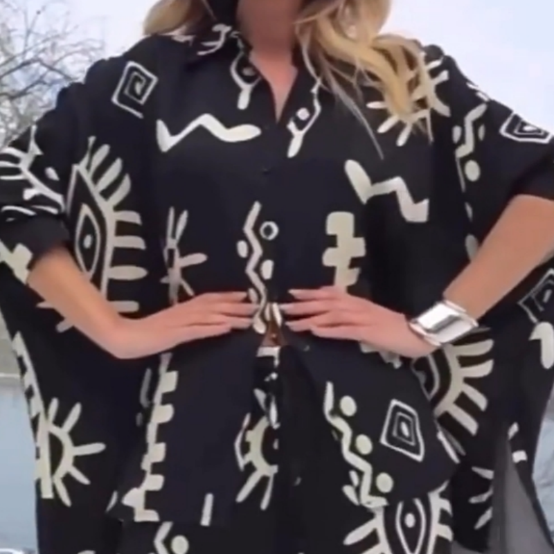 Iögonfallande tryckt topp - Ett livfullt och snyggt tryck i kombination med en lös silhuett är både djärvt och modernt, samtidigt som det andas och är bekvämt, vilket gör det till det perfekta valet för att hålla sig snygg och avslappnad i det varma vädret.