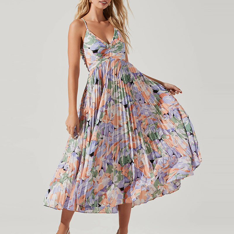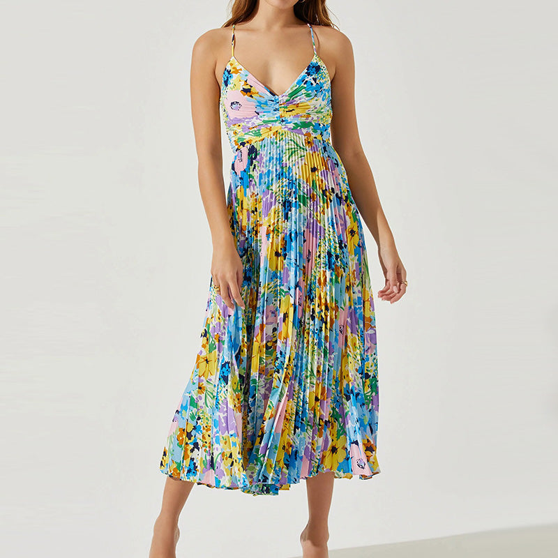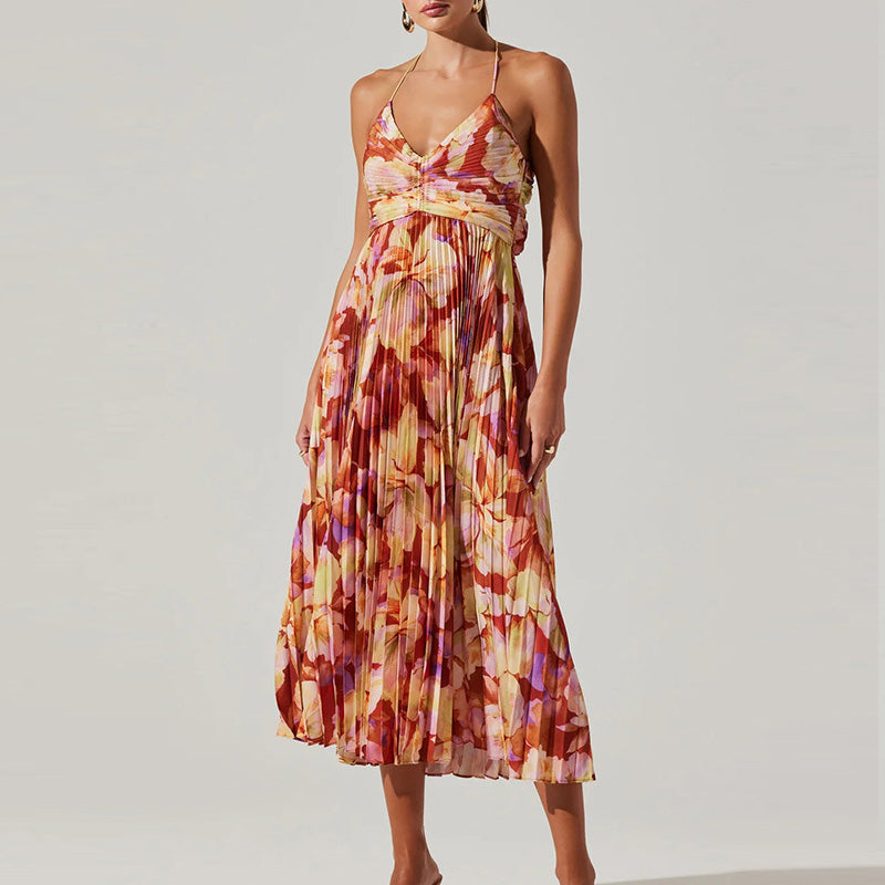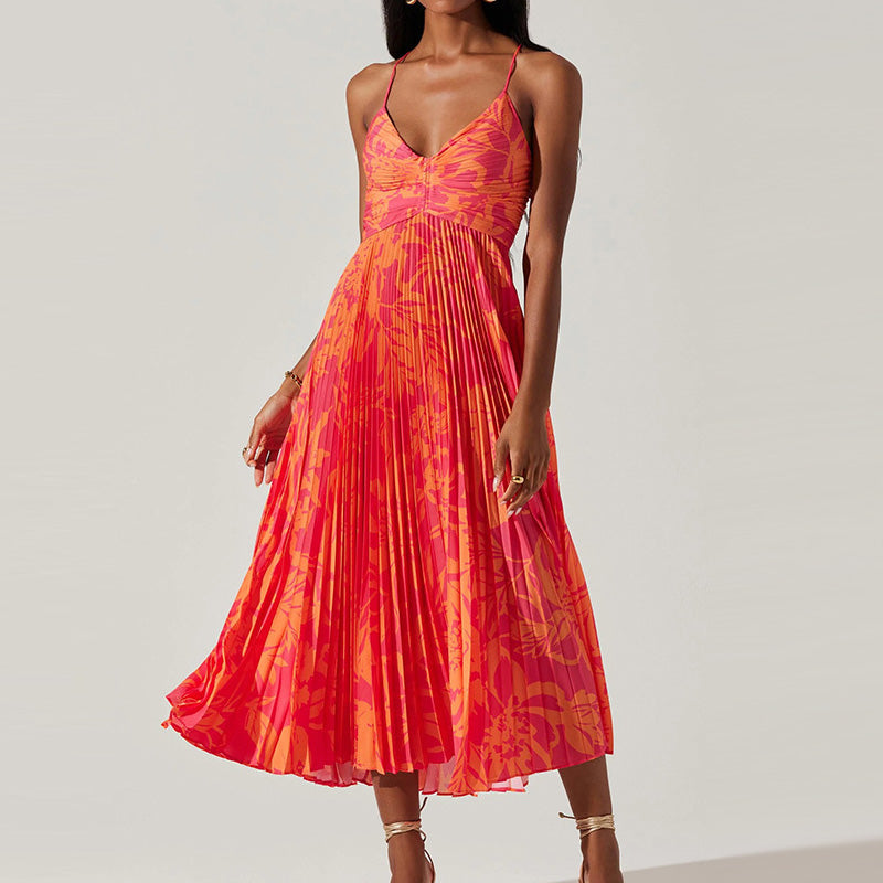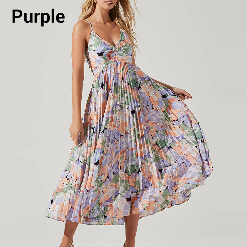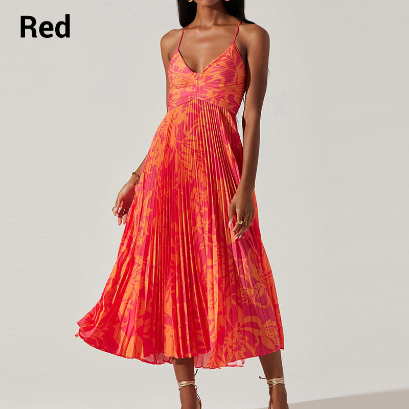 Paketet innehåller: 1*Kvinnor Mode V-Neck Ärmlös Tryckta Klänningar