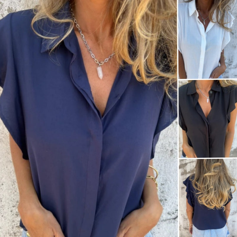 Paketet innehåller: 1 * damtopp med lösa volangärmar och korta ärmar