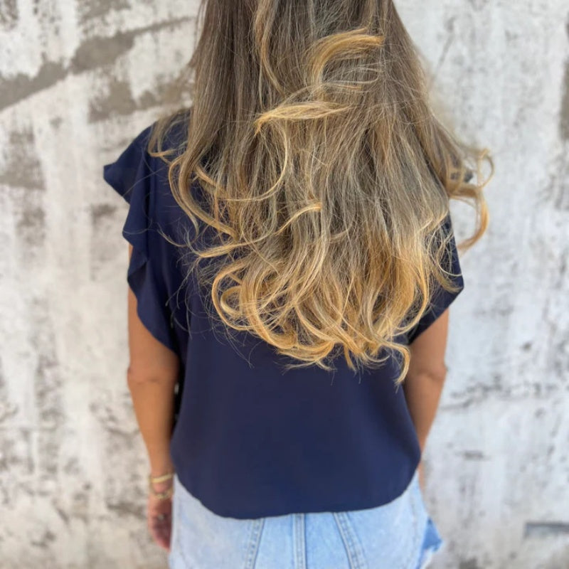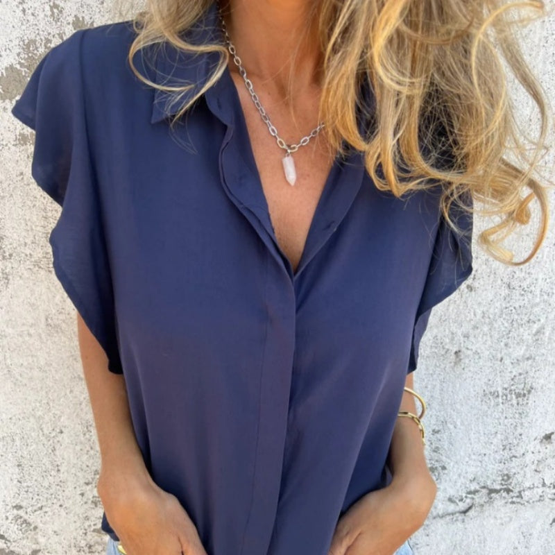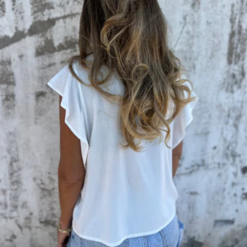 ELEGANT RUFFADE ÄRMAR: Snygga ruffade ärmar ger en touch av mjukhet och elegans och gör den här toppen perfekt för avslappnade utflykter eller eleganta tillfällen.