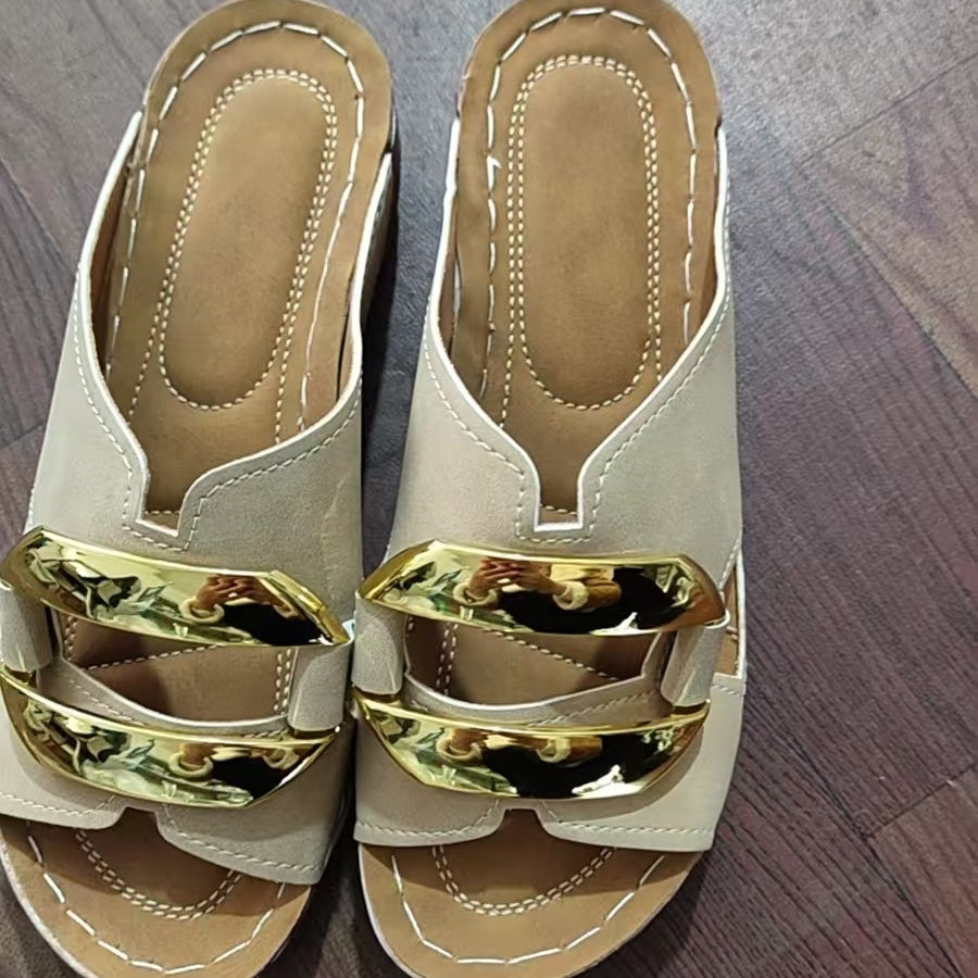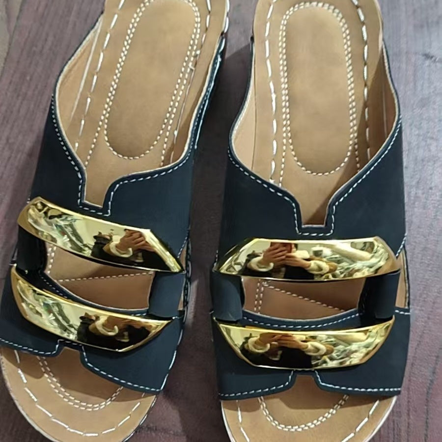 Paketet innehåller: 1×fotvalvsstöd sandaler med bred tå, metallspänne och utsmyckning för kvinnor