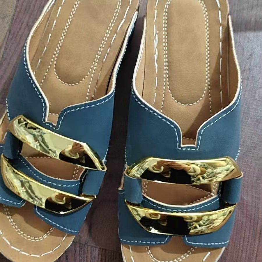 Fotvalvsstöd sandaler med bred tå, metallspänne och utsmyckning för kvinnor