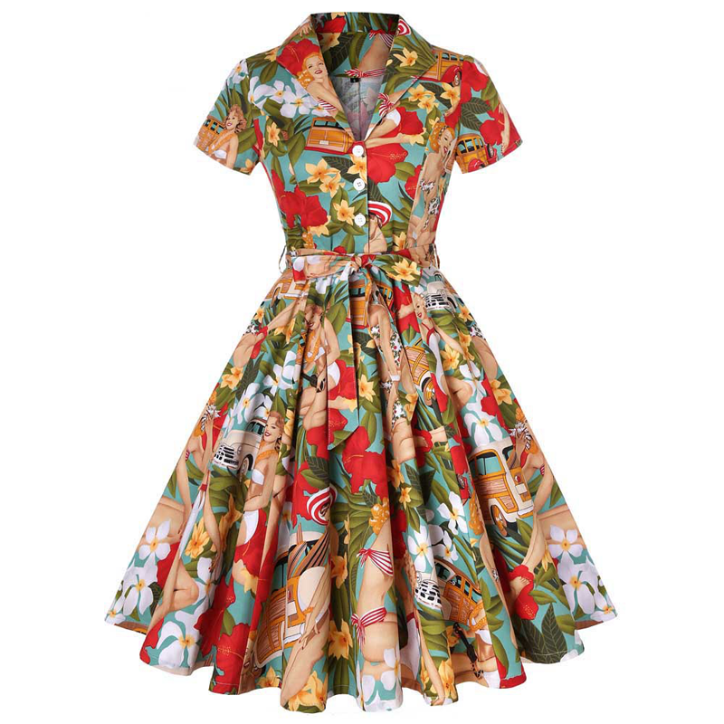 Paketet innehÄller: 1 * Kvinnors tryckta Lapel V-Neck lÄngklÀnning med bÀlte
