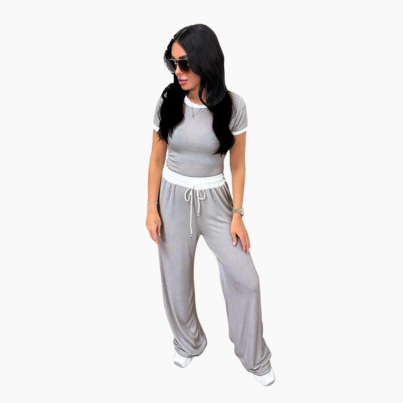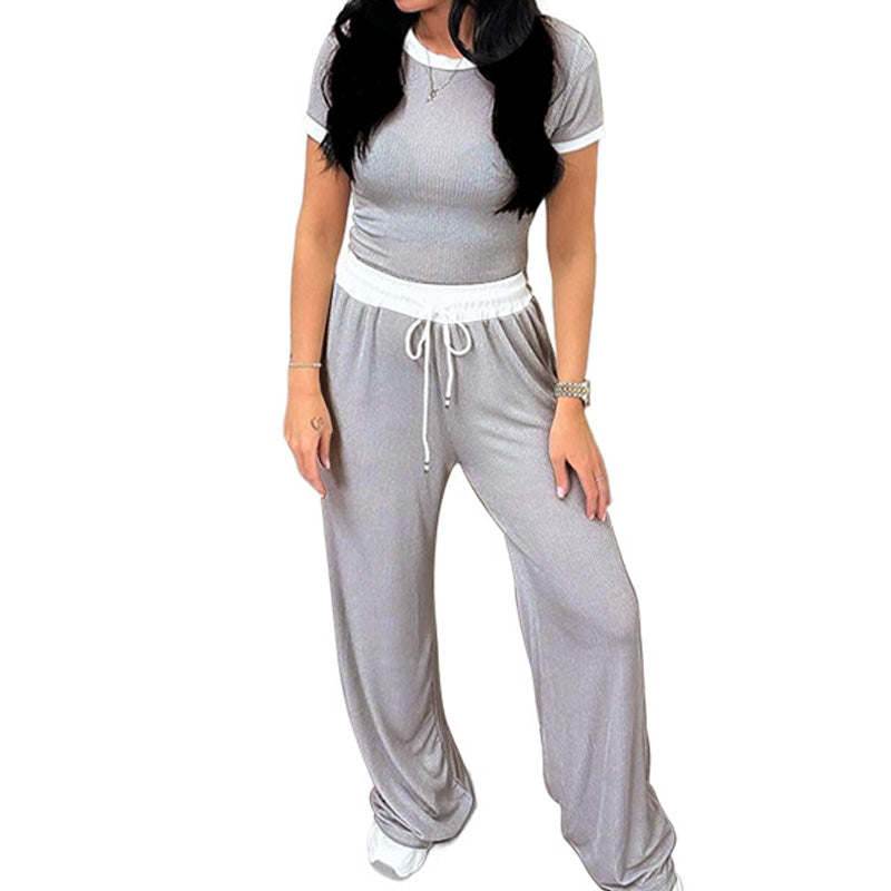 Ribbat loungeset för kvinnor med topp och byxor med vida ben