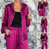 Paketet innehåller:1*Rund hals Satin Zipper Casual 2-delad kostym för kvinnor