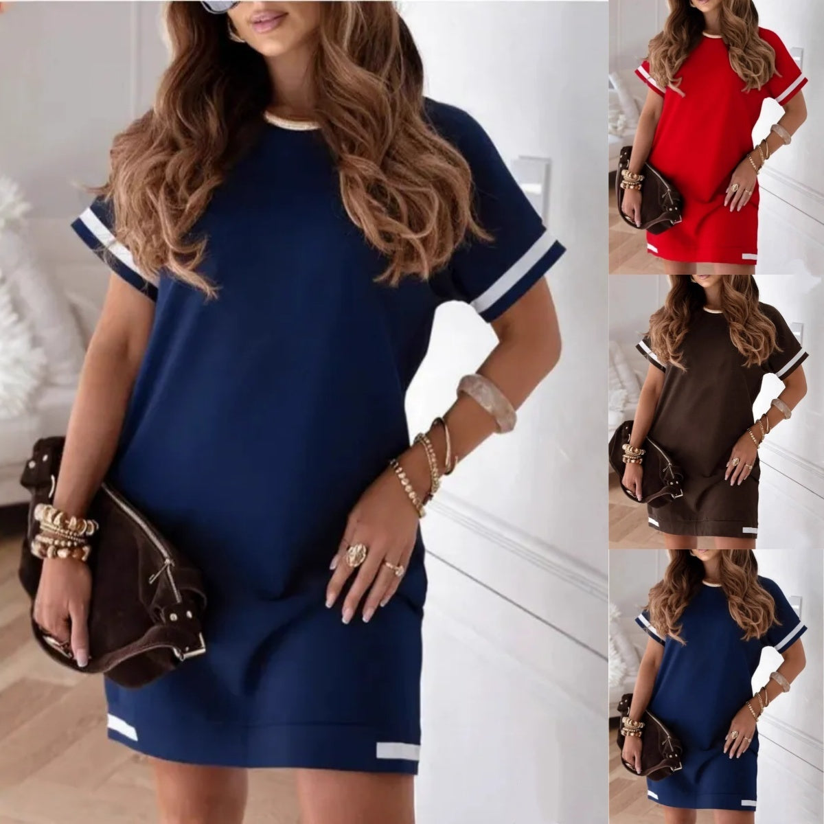 ✨Kortärmad klänning med rund hals för kvinnor💥