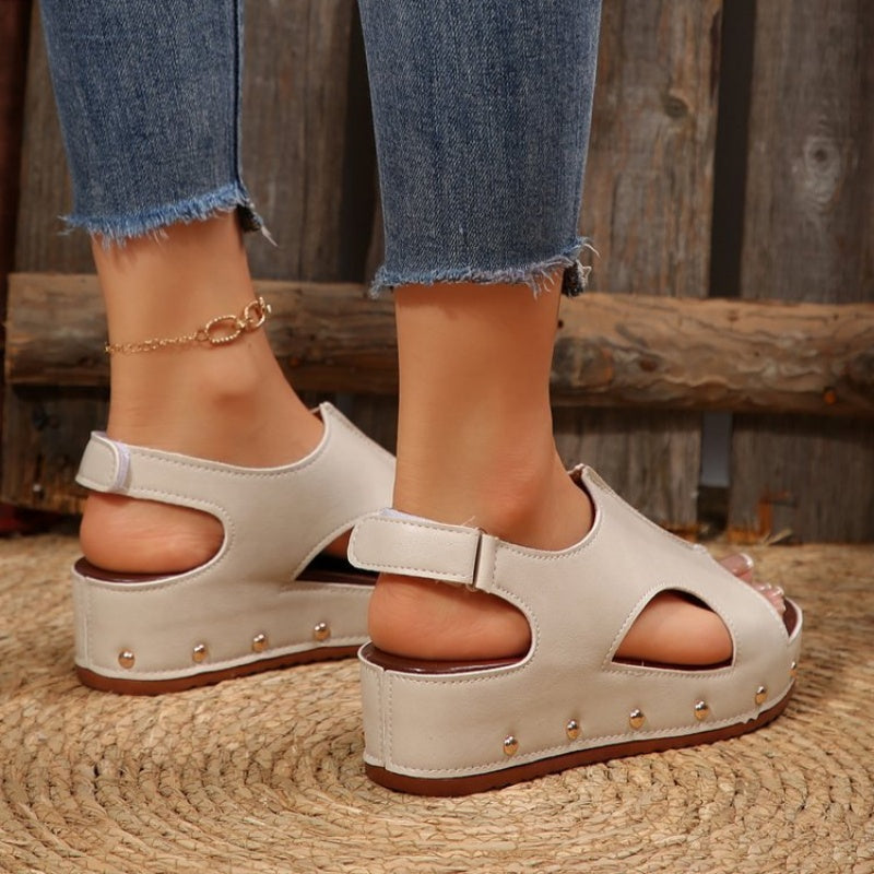 Justerbar elastisk rem med dubbad tjock sula för kvinnor fotvalvsstöd sandaler