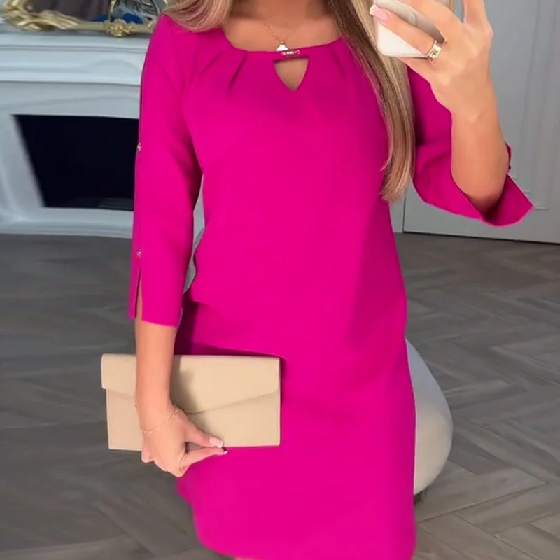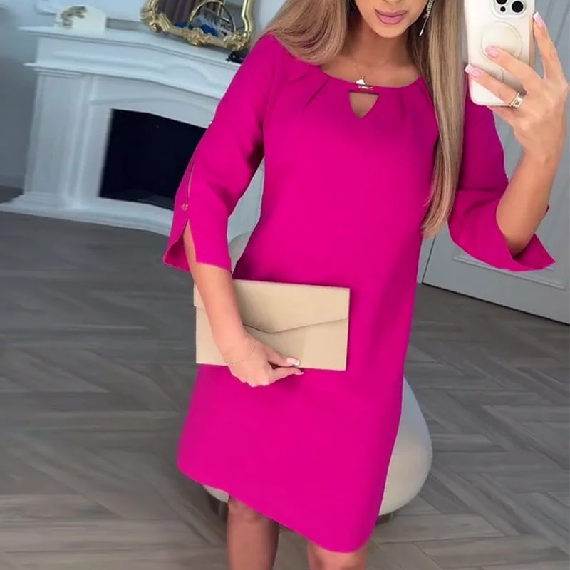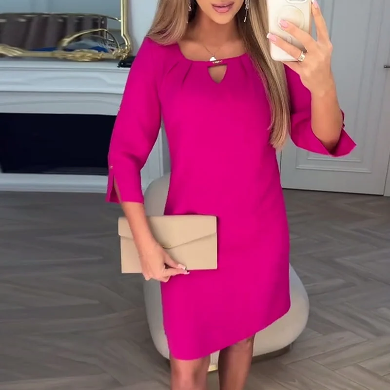 Paketet innehåller: 1 * Knälång klänning för kvinnor i enfärgad färg