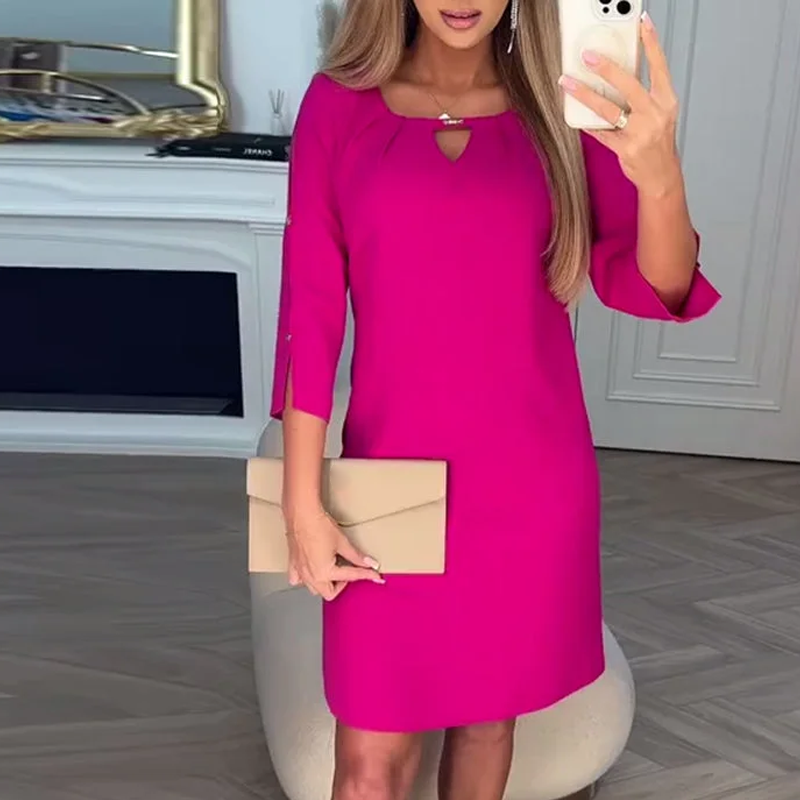 Enfärgad knälång klänning för kvinnor