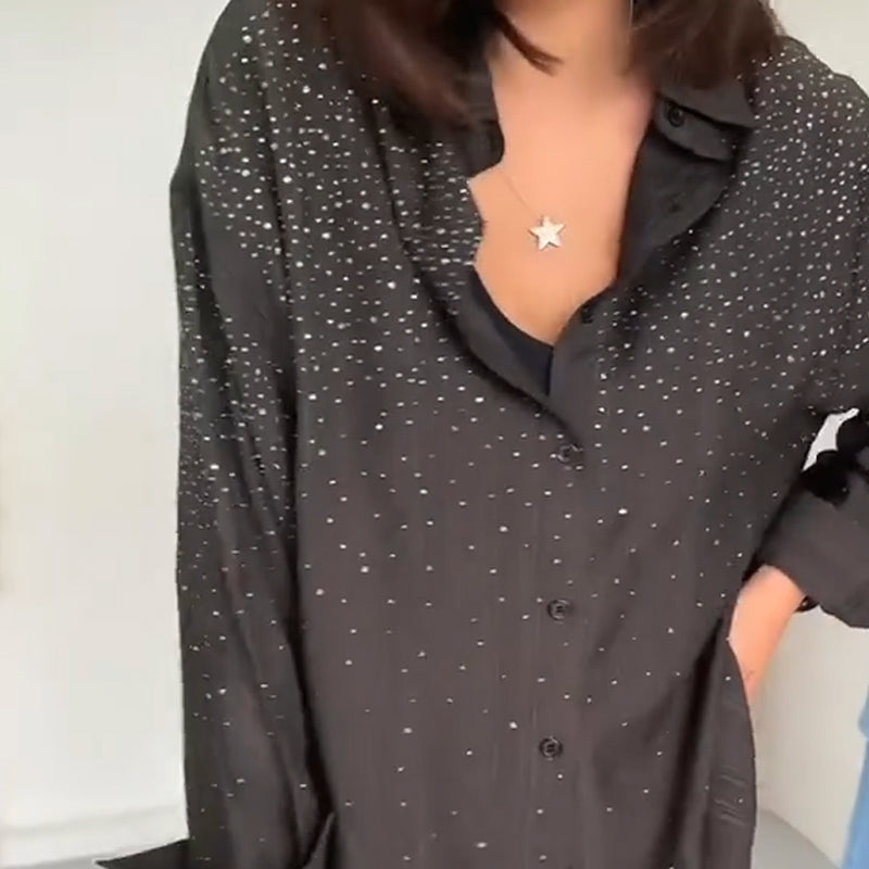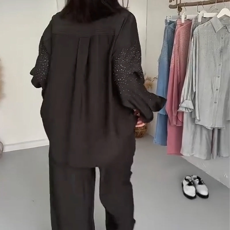 Sparkly Shirts för kvinnor & Wide-Leg Pants 2-delat set