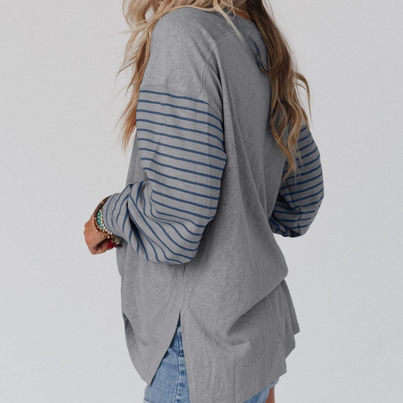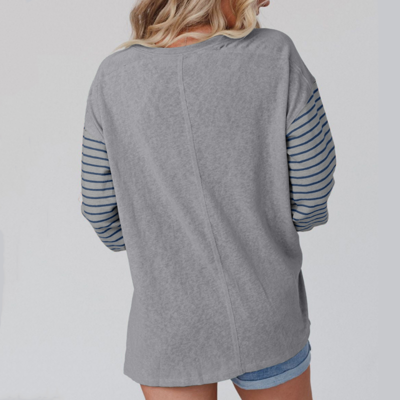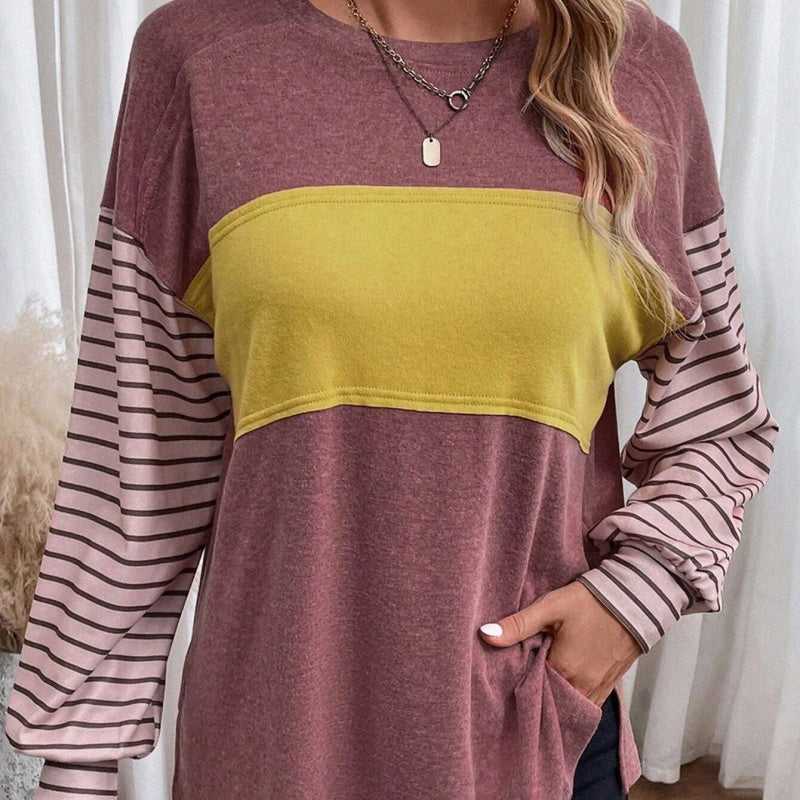 Paketet Innehåller: 1 * Damtrendig Färgblocksmönster randig långärmad t-shirt