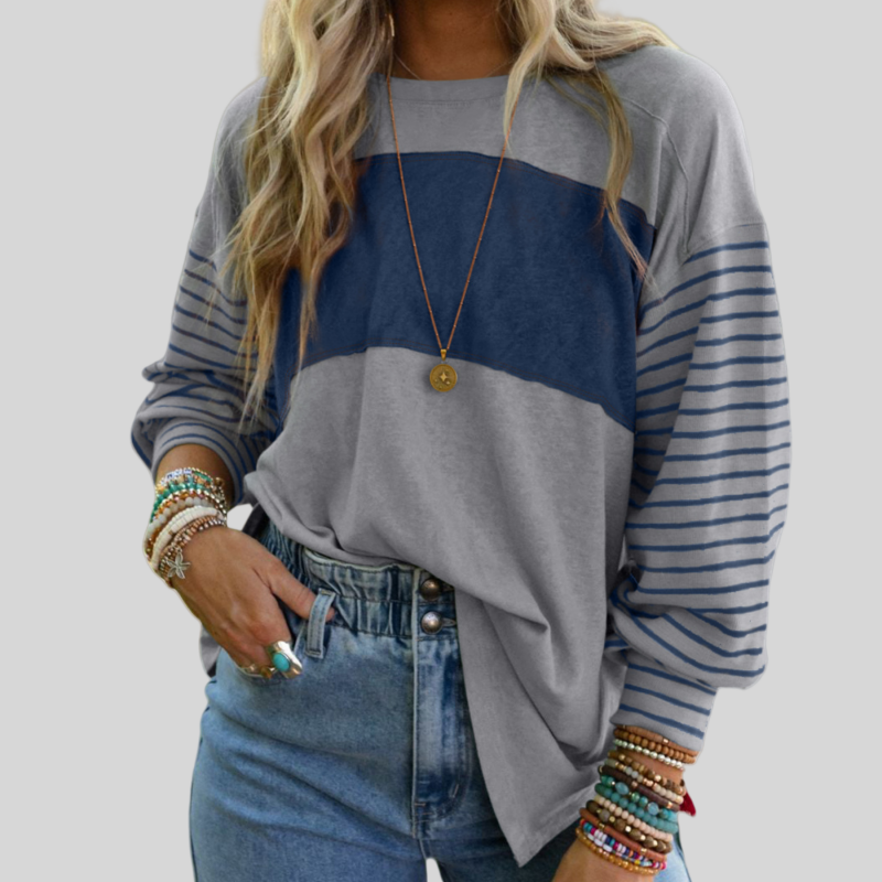 Damtrendig Färgblocksmönster randig långärmad t-shirt