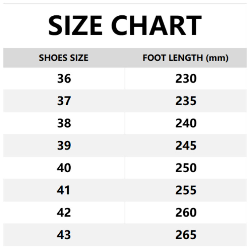 Storlek: 36, 37, 38, 39, 40, 41, 42, 43