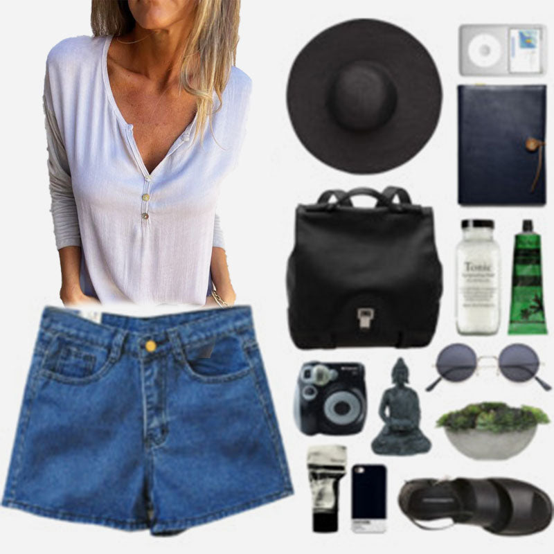 ELEGANT V-HALSNING - Vår topp har en elegant V-ringad design som vackert ramar in din halsringning och ger en sofistikerad och elegant touch till alla kläder för en raffinerad och elegant look.