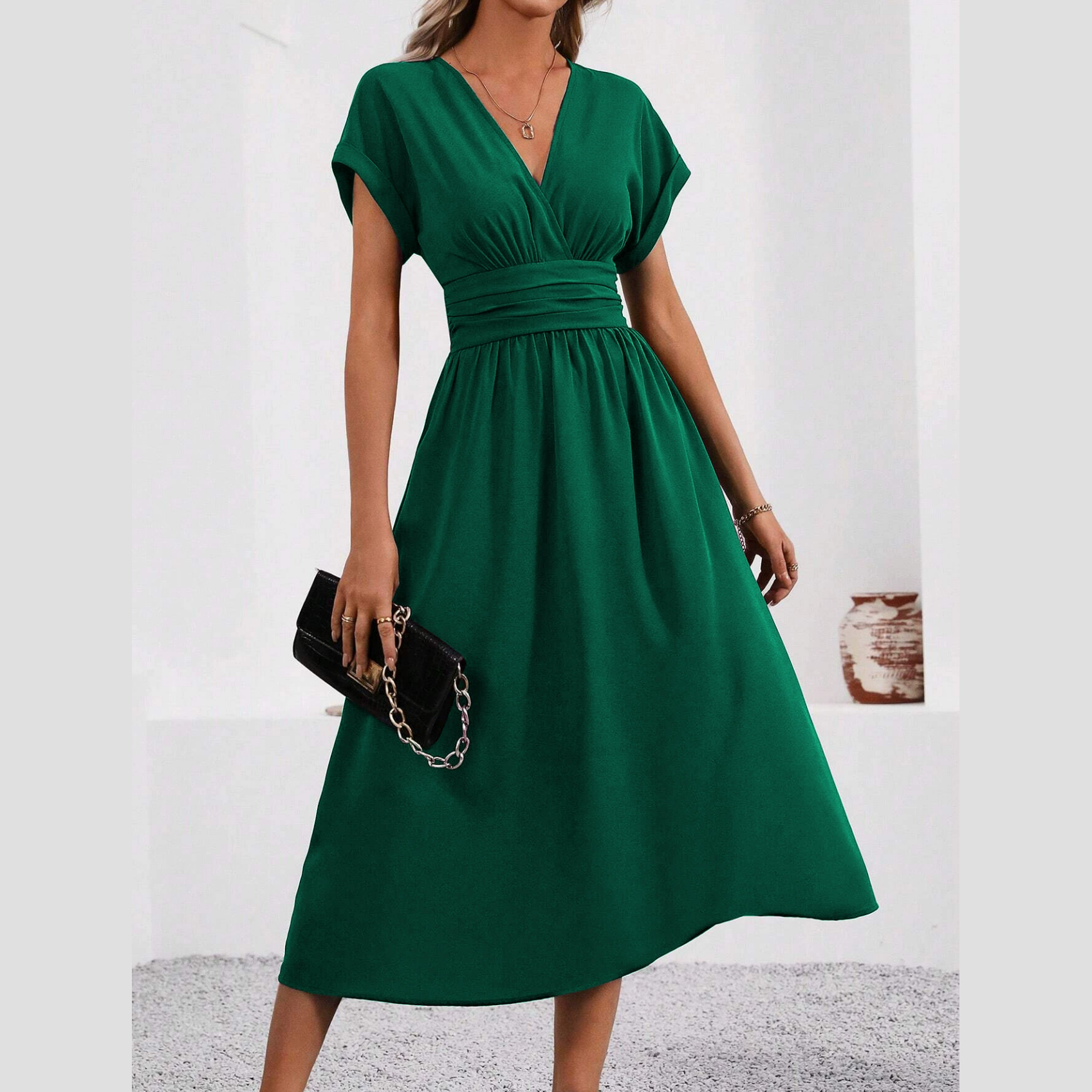Paketet innehåller: 1×Klänning för kvinnor med V-ringning och midja