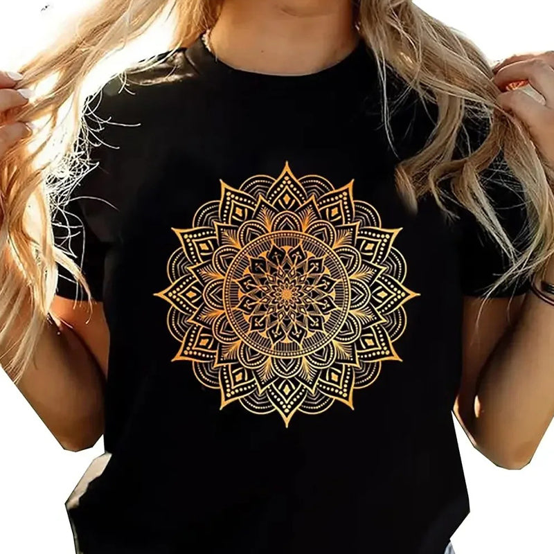 Kortärmad T-shirt med rund hals och tryck för kvinnor