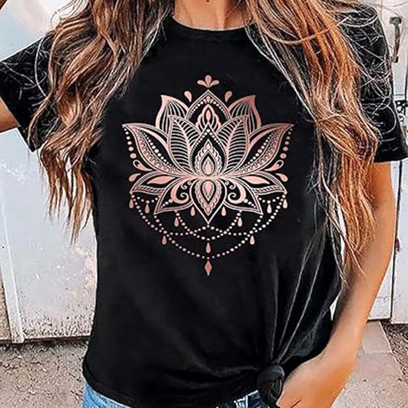 Paketet innehåller: 1 * kortärmad t-shirt med rund hals för kvinnor med tryck