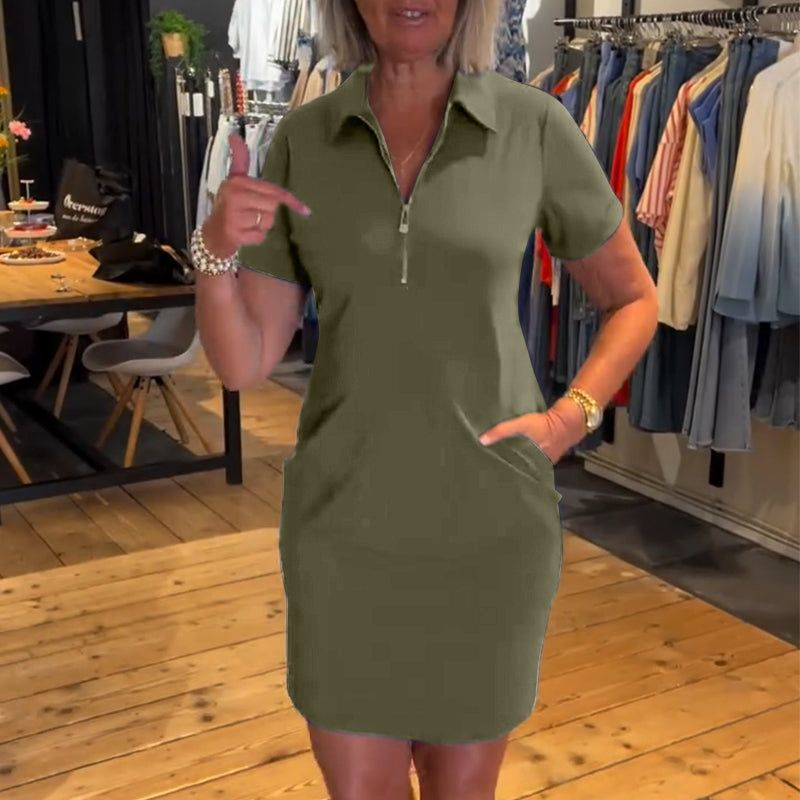 Kvinnors casual miniklänning med kvartlång dragkedja och fickor