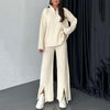 đKampanj för nya produkter + fri frakt till ditt hemđ„Kvinnors lösa enfĂ€rgade stickade topp och byxor tvĂ„delad set