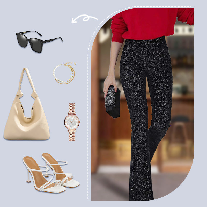 đNyĂ„rsrea - 49% rabattđDiva Sequin High Rise byxor med elastisk midja och flĂ€rp