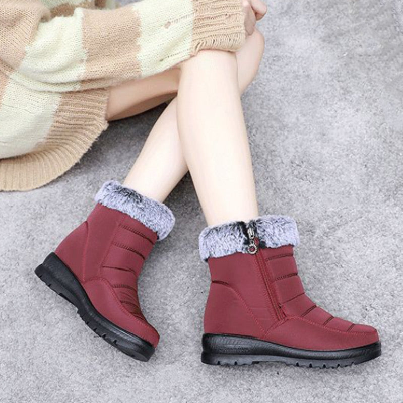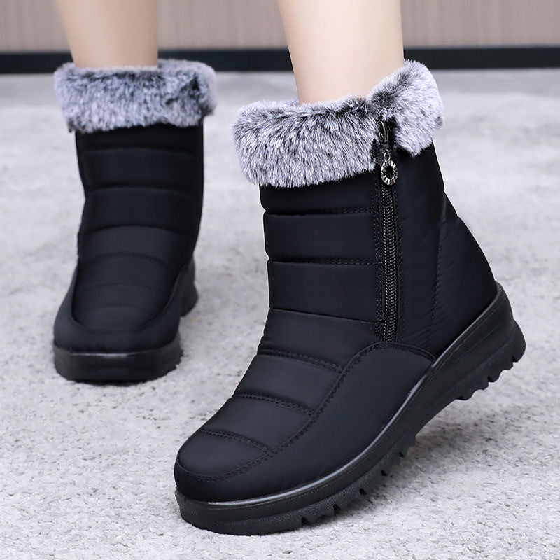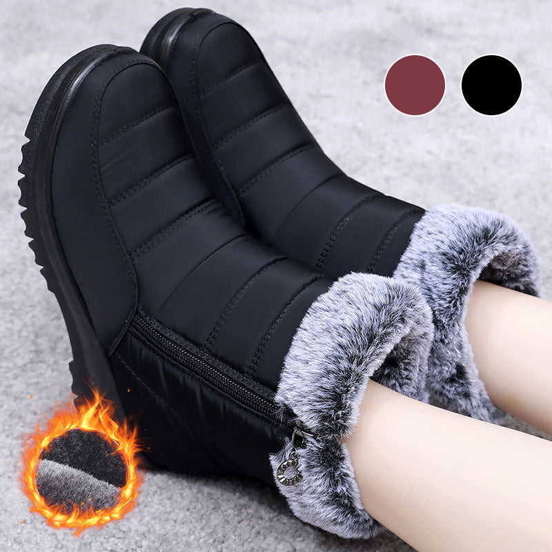 Vattentäta snöstövlar med dragkedja och fuskpäls för damer