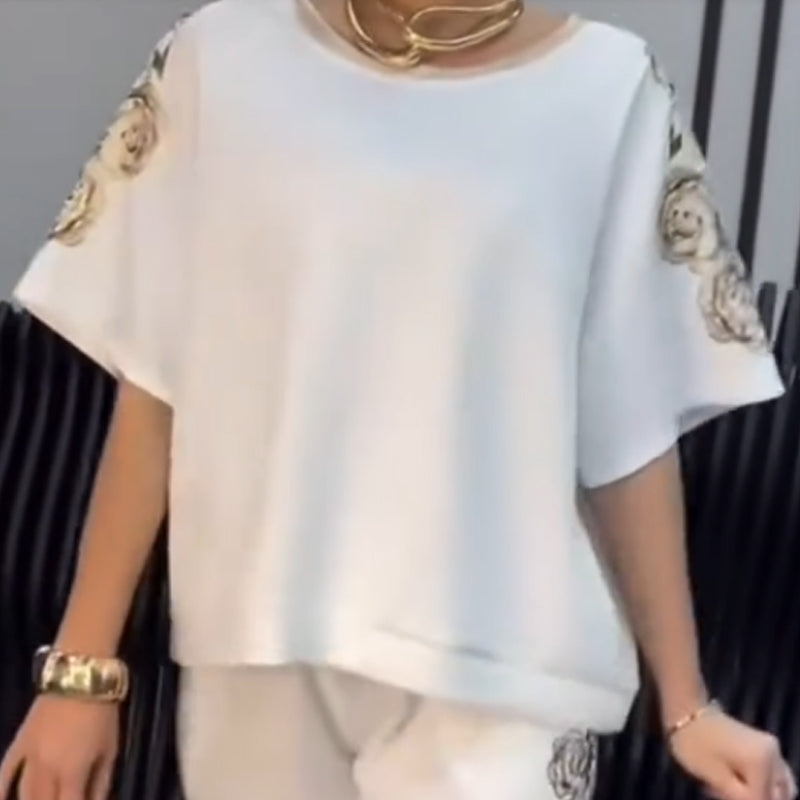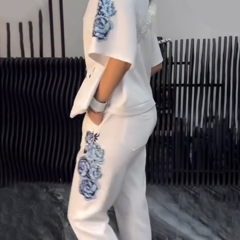 Paketet innehåller: 1* Tvådelat casual set med blommigt tryck för kvinnor
