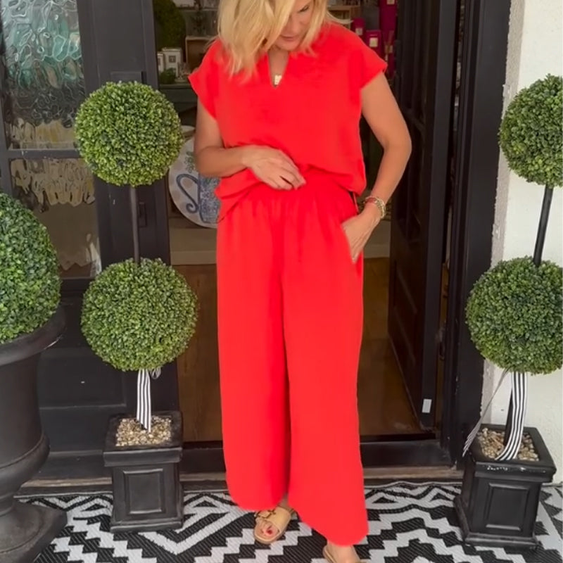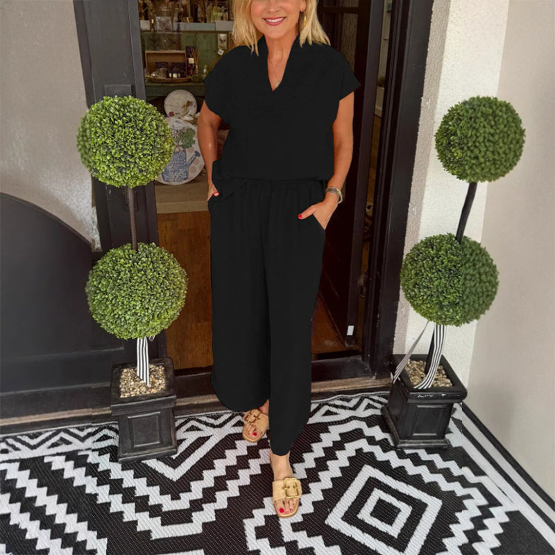 đ„ TvĂ„delat casual set i enfĂ€rgade fĂ€rger för kvinnor
