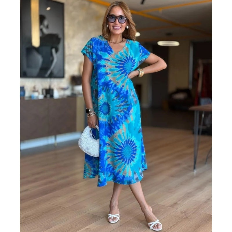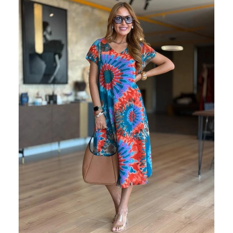 Varje fÀrg Àr slÄende: de livfulla trycken pÄ den hÀr klÀnningen ger karaktÀr och djup till den övergripande silhuetten. Varje fÀrg har en unik visuell effekt som kompletterar sÀsongens nyanser och sÀkerstÀller att du hÄller dig uppdaterad samtidigt som du behÄller din unika stil